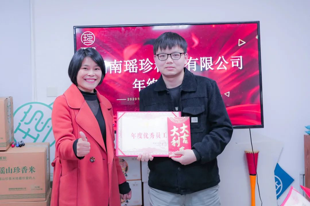 2020年(nián),公司全體(tǐ)員(yuán)工(gōng)團結一(yī)緻、同心開(kāi)拓,湧現(xiàn)出一(yī)批盡職盡責,為(wèi)公司發展做(zuò)出貢獻的(de)集體(tǐ)和(hé)個(gè)人(rén)。為(wèi)了(le)鼓勵先進,樹(shù)立典型,激發全體(tǐ)員(yuán)工(gōng)奮勇向前←的(de)工(gōng)作(zuò)積極性和(hé)創造性,公司先進集體(tǐ)、先進個(gè)人(rén)進行(xíng)表彰!同時(shí)基于≠全體(tǐ)員(yuán)工(gōng)在2020年(nián)的(de)付出,瑤珍董事(shì)長(cháng)蔣珍鳳向全體(tǐ)員(yuán)工(gōng)發紅(hóng)包、送年(nián)貨--瑤珍香米!