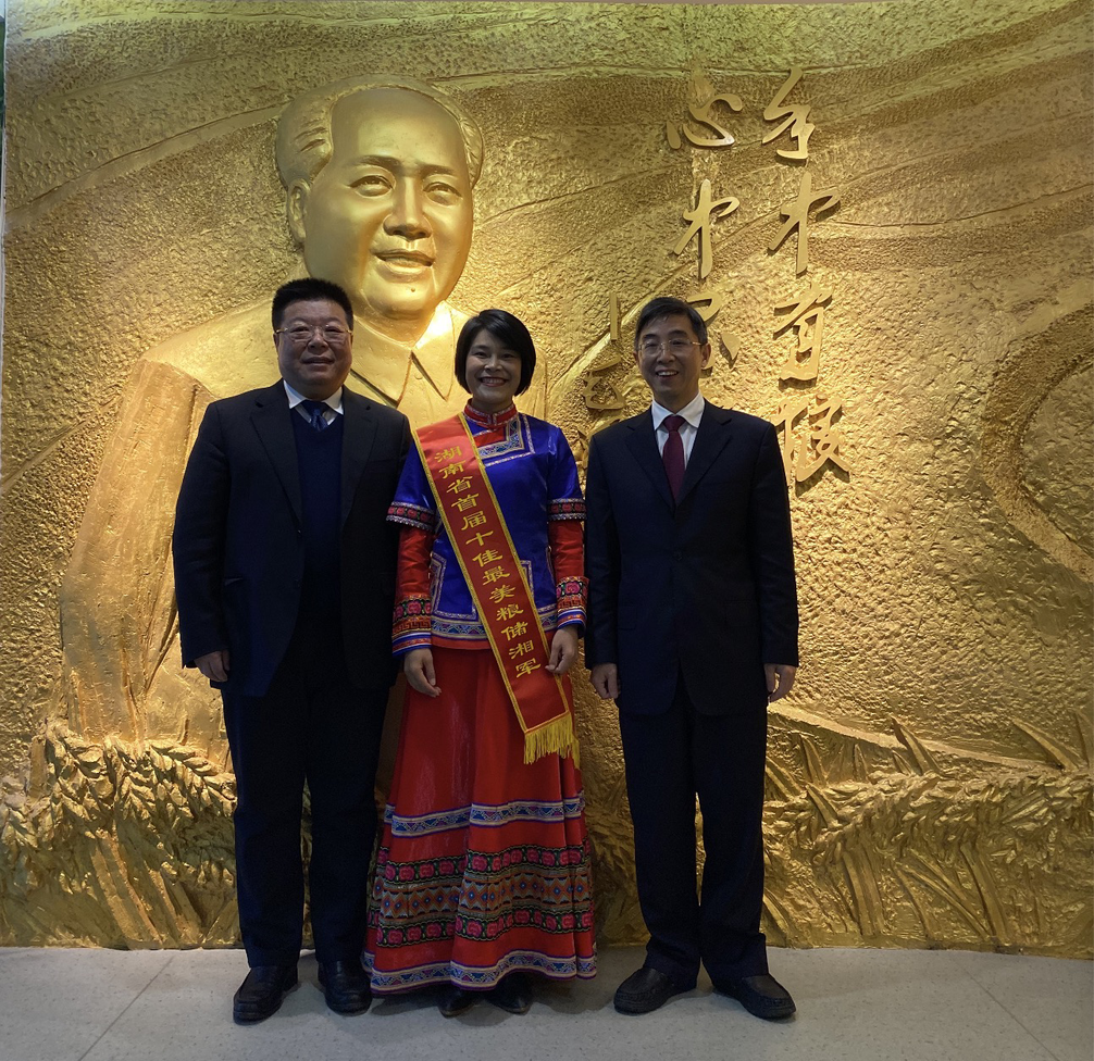 在頒獎典禮現(xiàn)場(chǎng)省糧食和(hé)物(wù)資儲備局黨組書(shū)記、局長(cháng)陳冬貴和(♣hé)副局長(cháng)周輝與瑤珍姐(jiě)姐(jiě)蔣珍鳳親切合照(zhào),并對(duì)瑤珍的(de)發展和(hé) 瑤珍姐(jiě)姐(jiě)贊賞有(yǒu)加。瑤珍姐(jiě)姐(jiě)蔣珍鳳表示,此次獲得(de)“最美(měi)糧儲湘軍”稱号是(shì)個(gè)人(ré✔n)的(de)榮譽,也(yě)是(shì)對(duì)公司12年(nián)來(lái)紮根糧食行(xíng)業(yè)的(de)充分(fē n)肯定和(hé)鞭策。以後我将在“最美(měi)糧儲湘軍”精神的(de)引領下(xià),繼續奔跑,讓“最美(měi)糧儲湘軍”精神守護更多(duō)中國(guó)人(rén)的(±de)糧食夢!