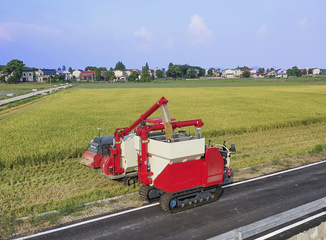 (2021年(nián)7月(yuè)22日(rì),長(cháng)沙市(shì)望城(chéng)區(qū)高(gāo)塘嶺街(jiē)道(dào)新陽村(cūn)全能(néng)農(nóng)機(jī)專業(yè)合作(zuò)社無人(rén)農&(nóng)場(chǎng)內(nèi),全國(guó)首個(gè)雙季稻區(qū)無人(rén)農(nóng)場(chǎng)首次迎來(lá≥i)水(shuǐ)稻“夏收” 。辜鵬博 攝