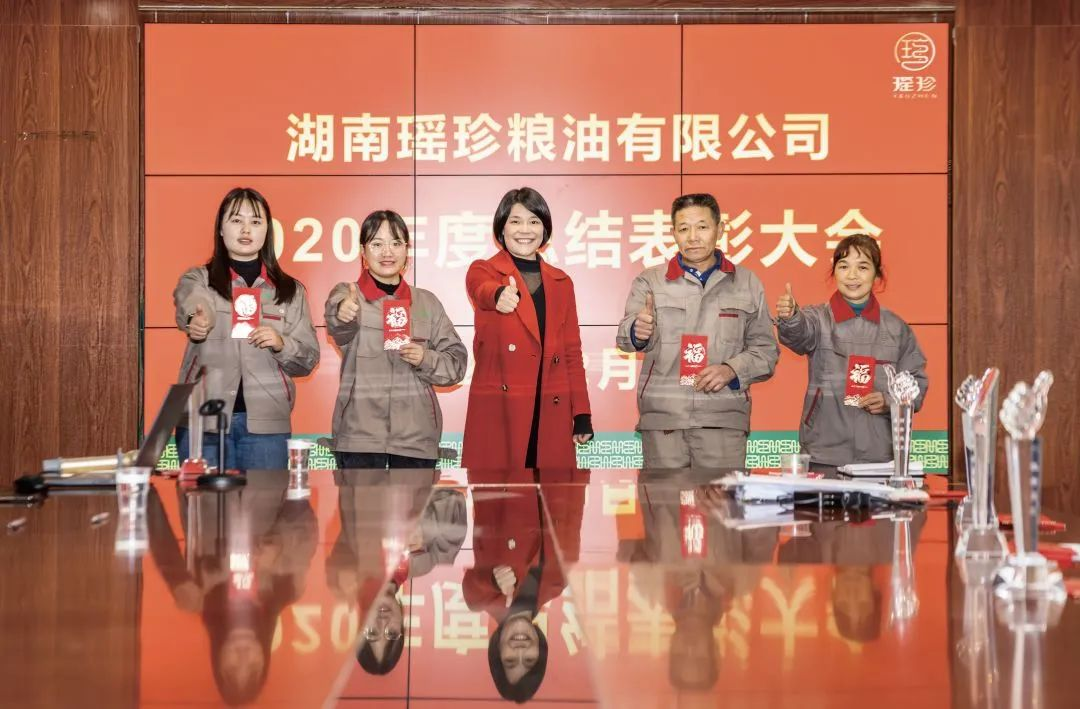 2020年(nián),公司全體(tǐ)員(yuán)工(gōng)團結一(yī)緻、同心開(kāi)拓,湧現(xiàn)出一(yī)批盡職盡責,為(wèi)公司發展做(zuò)出貢獻的(de)集體(tǐ)和(hé)個(gè)人(rén)。為(wèi)了(le)鼓勵先進,樹(shù)立典型,激發全體(tǐ)員(yuán)工(gōng)奮勇向前←的(de)工(gōng)作(zuò)積極性和(hé)創造性,公司先進集體(tǐ)、先進個(gè)人(rén)進行(xíng)表彰!同時(shí)基于≠全體(tǐ)員(yuán)工(gōng)在2020年(nián)的(de)付出,瑤珍董事(shì)長(cháng)蔣珍鳳向全體(tǐ)員(yuán)工(gōng)發紅(hóng)包、送年(nián)貨--瑤珍香米!